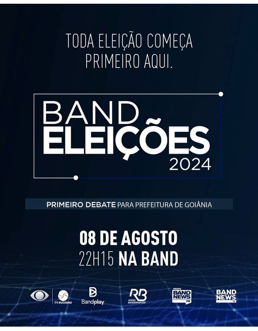 A TV Sucesso, que é afiliada à Band, irá exibir o debate com os candidatos à Prefeitura de Goiânia na segunda-feira, dia 8 de agosto, às 22h30.