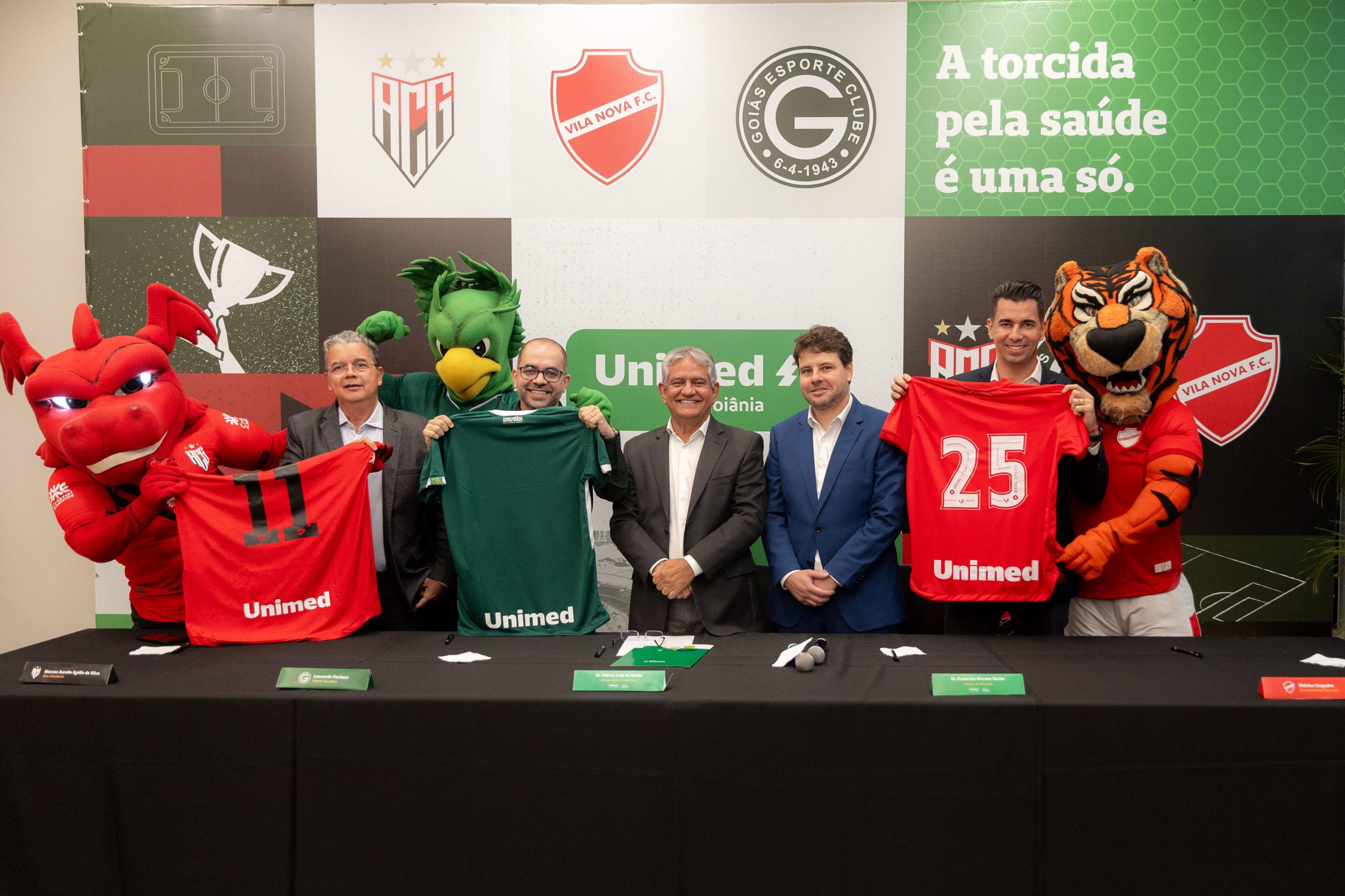 Com a campanha “A torcida pela saúde é uma só”, a coletiva reuniu a diretoria da Unimed Goiânia, dirigentes dos clubes e os mascotes das equipes. A renovação dos contratos assegura que a marca Unimed Goiânia continuará estampada nos uniformes das três agremiações, reforçando uma parceria de longa data que vai além dos gramados.