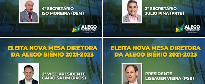 Com 40 votos favoráveis, nenhum voto contrário e nenhuma abstenção, o atual presidente da Assembleia Legislativa de Goiás, Lissauer Vieira (PSB), foi reeleito para a Mesa Diretora da Assembleia no biênio 2021-2023, com posse em.