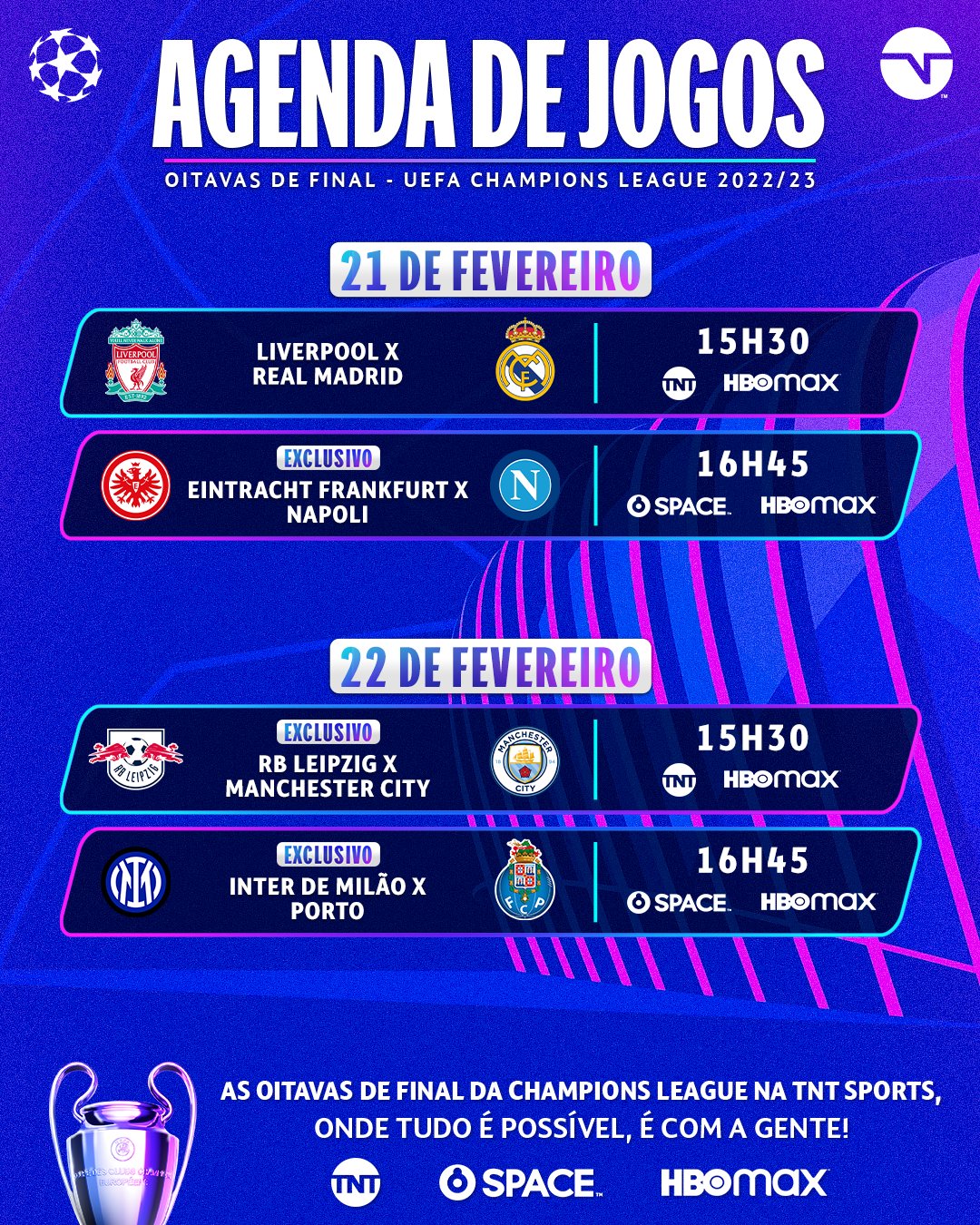 Nos dias 21 e 22 de fevereiro, acontecem os últimos jogos de ida das oitavas de final da UEFA Champions League 2022/2023. E para estar por dentro de todos os.