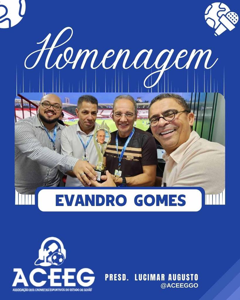 Nome respeitado por todos da crônica esportiva de Goiás, o comentarista Evandro Gomes, da Rádio CBN, recebeu, da Associação dos Cronistas Esportivos de Goiás, homenagem pela sua trajetória profissional. Evandro.