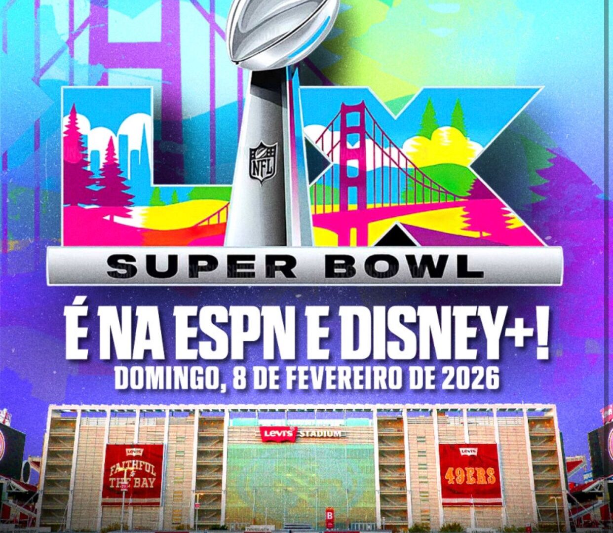 NFL: ESPN e Disney+ anunciam transmissão do Super Bowl LX em 2026